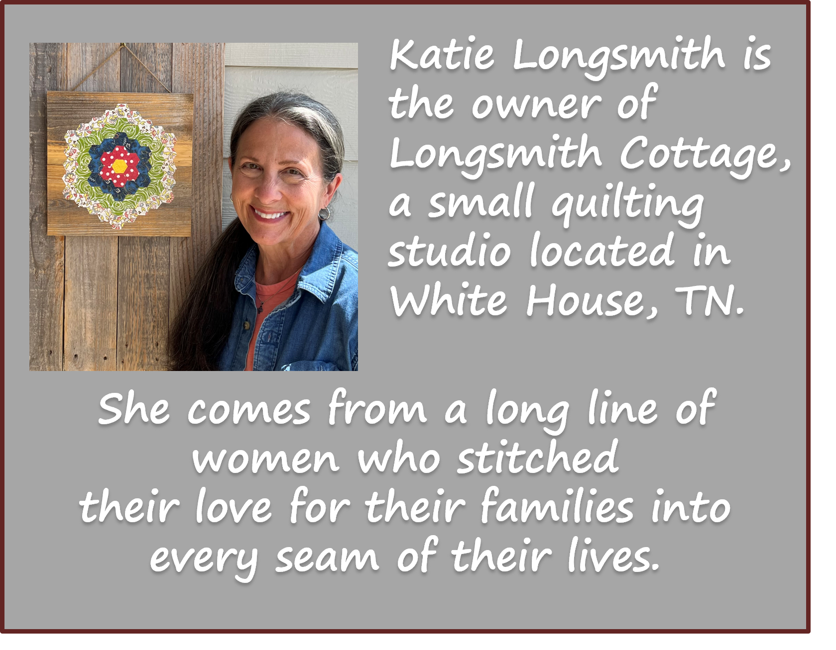 Whether the quilt is a special birthday, wedding, or graduation gift, or is in memory of someone dear, a Custom Quilt will become a legacy of love.